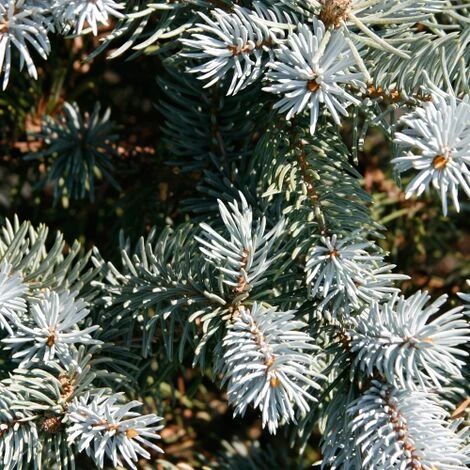 La pianta di Picea pungens “Glauca Globosa” chiamata anche “Abete blu” o “Abete azzurro”, e’ una conifera nana sempreverde, di forma gobosa, schiacciata, che raggiunge il metro di altezza, con corteccia squamosa di colore grigio-porporino e robusti getti di colore arancione-marrone. Possiede foglie appuntite di colore verde-grigio bluastro, lunghe 1,5-3 cm, disposte a raggi sui getti, curvi verso l’alto, sono ricoperti di cera glauca. Coni femminili cilindrici, di colore prima verde, poi marrone chiaro, lunghi 7-12 cm, con scaglie flessuose. Resistente alla siccita’ ed al freddo, predilige un’esposizione soleggiata, e’ una pianta rustica che non necessita di cure particolari. Ideale per schermature o come esemplare isolato.