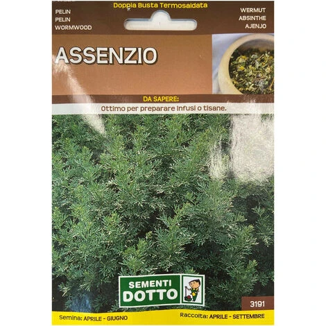 La pianta aromatica di Assenzio maggiore (Artemisia absinthium) è una officinale erbacea perenne, che appartiene alla famiglia delle Asteraceae. Sviluppa una radice legnosa e foglie aromatiche bi- e tripennatosette, grigio-argentee, ricoperte di peluria sericea, lunghe 6-10 cm, con lobi oblunghi. Genera pannocchie lasse, lunghe 5-12 cm, di capolini grigio-giallastri che sbocciano alla fine dell’estate.Ha un sapore estremamente amaro ed è soprattutto impiegato nella preparazione del distillato d’Assenzio, dal tipico colore verde e del Vermut. Inoltre si utilizzano i fiori e le foglie per preparare decotti ed infusi.