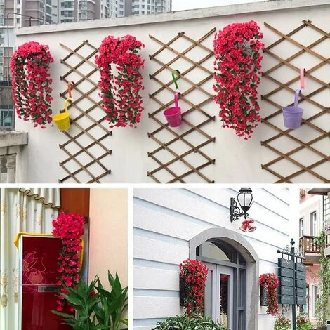 Tipo di prodotto vegetale o animale: rosa, ederaUso specifico del prodotto: decorazione per la casa, decorazione per ufficio Colore: rosso rosato Dimensioni: circa 90 cm di lunghezza, circa 45 cm di larghezza, e un bouquet di viole è diviso in 18 rami, circa 45 cm di lunghezza e 4 rami lunghi circa 80 cm. Ci sono circa 200 fiori in un bouquet. Il diametro dei fiori è di 5 cm e i fiori artificiali sono molto adatti per piante da balcone, recinzioni da giardino e decorazioni per pareti da giardino.Facile da pulire: le piante artificiali da esterno (come la cosa reale) sono resistenti ai raggi UV e all’acqua e non sbiadiscono. Perfetto per la decorazione di interni ed esterni. Non devi preoccuparti di morire se non hai tempo per affrontarlo. Puoi sempre goderti l’aspetto delle piante fresche senza manutenzione. Alta qualità: il balcone di fiori artificiali per matrimoni resistente alle intemperie è realizzato in materiale plastico di alta qualità, non tossico e resistente, può essere utilizzato a lungo, il colore della rosa rossa è bello e la trama è chiara Forte atmosfera naturale: Wow, i nostri clienti possono ottenere bellissime piante artificiali all’aperto. Molto diverse dalle piante artificiali sospese, le piante artificiali da balcone sono molto carine, colorate e realistiche.Applicazione: l’edera artificiale decorativa è perfetta per bouquet da sposa, feste, decorazioni per ufficio, decorazioni, altari, chiese, corpetti, archi di chiese, centrotavola di accoglienza, puoi usalo per appendere pareti, porte, altalene, specchi e qualsiasi pianta appesa artificialmente ovunque. ti piace.
