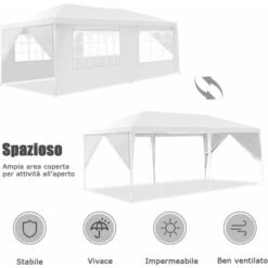 Gazebo 3,3×3,3 Metri Giardino Bar Veranda Mercato Pagoda Antigua Uv