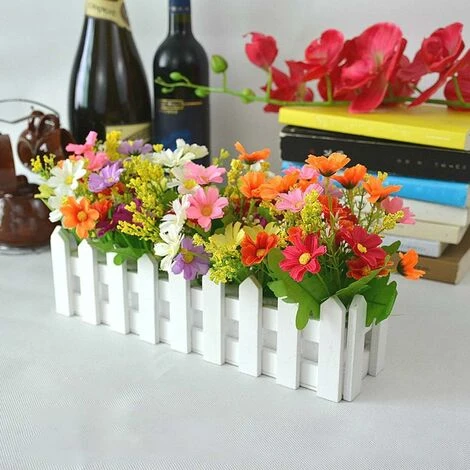 - Materiale: fiore di seta + staccionata in legno, dimensioni: circa 30 * 7,5 * 17 cm. 2 vasi di fiori artificiali possono essere posizionati ovunque tu voglia decorare.