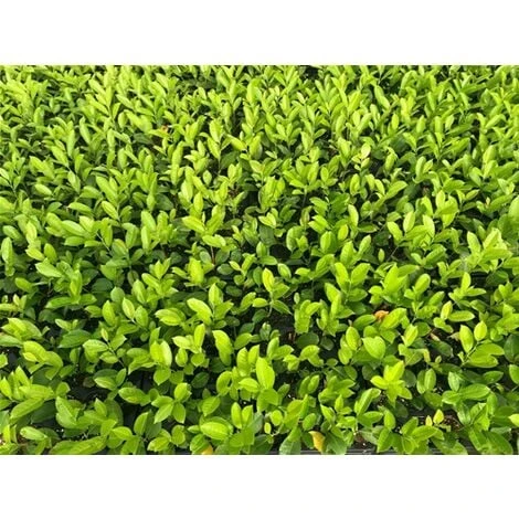 Pianta di prunus lauroceraso rotundifolia coltivata in vaso biodegradabile, prodotto con fibre vegetali pressate, esente da prodotti chimici e biodegradabile al 100%.