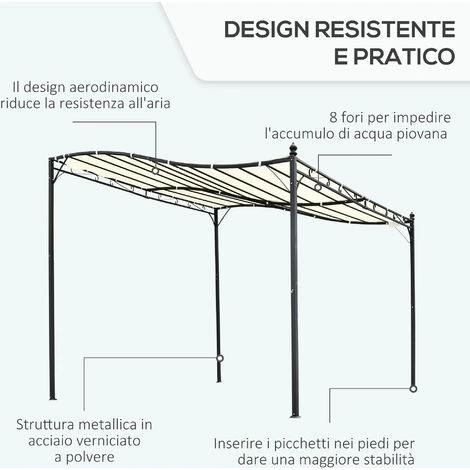 Questo elegante gazebo pergola è perfetto per riparare la tua casa dai raggi del sole. Realizzato in tessuto di poliestere con rivestimento in PA è resistente ai raggi del sole e ti offre un’ampia area ombreggiata. Grazie al manuale di istruzioni, ai picchetti di fissaggio e all’utensileria inclusa nella confezione puoi installarlo in pochi istanti, e creare il tuo angolo di relax in giardino.