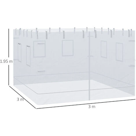 Possiedi un gazebo da giardino ma con una zanzariera strappata o danneggiata? Buone notizie, Outsunny possiede una zanzariera per gazebo che si adatta alla maggior parte dei modelli di gazebo 3×3. Realizzata in tessuto di poliestere pronto per l’uso, la zanzariera protegge il tuo spazio privato interno da insetti, foglie e detriti. Ogni parete si monta facilmente come una tenda da doccia, e puoi riporla in una comoda borsa a doppia maniglia facile da trasportare.