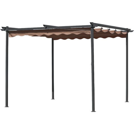 Struttura interamente in acciaio, pali portanti mm.50×50 , profili di collegamento mm.30×50 , top in poliestere 180 gr/mq di colore beige scuro con movimento retrattile, dimensioni cm.300x300x220H