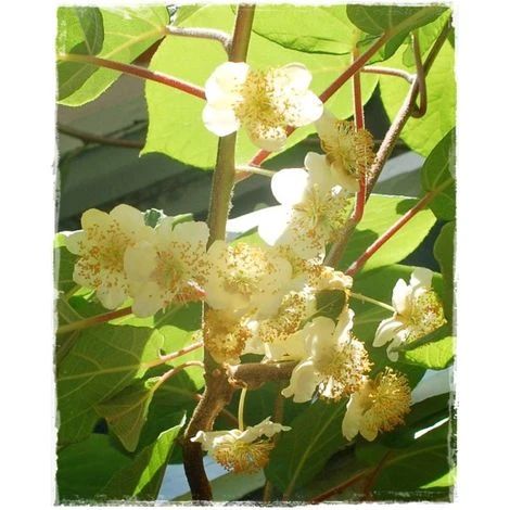 La pianta di kiwi Hayward Impollinatore Maschio, non produce frutti, ma produce fiori di colore giallo biancastro raggruppati in mazzetti, di medio piccole dimensioni e riesce ad impollinare fino a 6 piante di kiwi femmina.