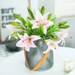 ZOLGINAH Bouquet Di Fiori Artificiali Set Di 5 Fiori Artificiali Finti Giglio Plastica Per La Casa Deco Matrimonio Paese Cimitero Pianta Artificiale Per Esterni Interni (rosa)