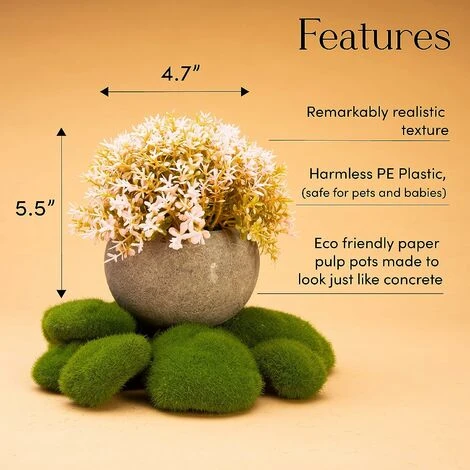 “”Vero o falso? I tuoi amici non lo sapranno mai! Mentre molte piante decorative sono palesemente finte, il nostro set di piantine finte multicolori ha un aspetto meraviglioso, così fresco e naturale da avere l’aspetto reale! Questo set di piante da interno è in un elegante vaso simile al cemento di polpa, sono inclusi 3 design unici: fiori di lavanda, fiori di pesco e la classica combinazione succulenta. Disponili insieme o separali, ognuno con il proprio spazio!A differenza di altre piantine ornamentali finte che sembrano consumate e consumate , le nostre piante sono accuratamente confezionate per sembrare fresche e pronte per essere gustate. Misurando solo 14 x 12 cm, questo set di piante d’appartamento è una dichiarazione di stile per qualsiasi stanza e non richiede cure da vere piante d’appartamento! Posizionale ovunque e abbellile con un tocco di verde che durerà per anni. sempre.Dai una nuova lei vive a casa! Rinfresca qualsiasi ambiente con le nostre piccole piante artificiali! Cucina, ufficio, camera da letto, bagno! Posiziona scatole regalo in vasetto finto come decorazioni su tavoli, tavolini, mensole, ripiani della cucina o come centrotavola. Senza profumo, questi falsi verdi non confondono gli odori in cucina. Le piante finte in vaso bianco sono realizzate in plastica PE innocua e sono sicure per i bambini e gli animali domestici curiosi. Che tu abbia il pollice verde o un serial killer di piante d’appartamento innocenti, ora puoi lasciarti tutto alle spalle. Con le nostre piante finte da sistemare e dimenticare, non ti resta che scegliere dove metterle per arredare il tuo ufficio, studio, biblioteca, camino, bagno e goderti ogni giorno la loro vegetazione fresca e vivace. Non dovrai più preoccuparti di ricevere abbastanza luce solare o la giusta quantità di acqua per le tue piante!Sappiamo che i mobili di alta qualità e ben progettati sono ciò che trasforma un edificio in una casa. Siamo una piccola azienda a conduzione familiare e ci impegniamo a fornire piante artificiali ben fatte che abbelliranno la tua casa e renderanno tutti felici per gli anni a venire. Mettiamo sempre al primo posto la soddisfazione del cliente. Piante finte di plastica in vaso, sicure per bambini e animali domestici – piccole piante artificiali da interno. “””