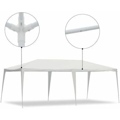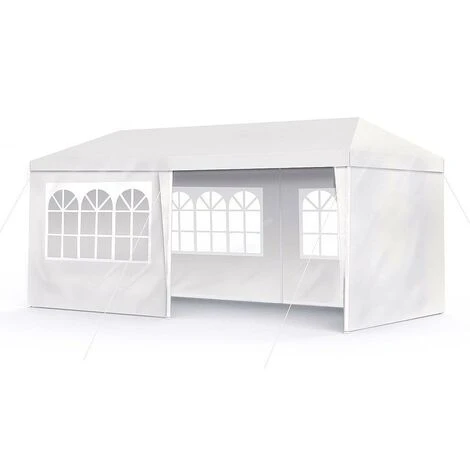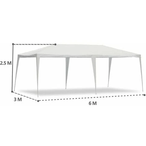 Gazebo per feste ed eventi di dimensioni 3×6 mt, robusto, attraente e versatile!Il telo realizzato in polietilene Trama Oxford 210 Den Grado-A, garantisce impermeabilità e protezione dai raggi UV al 99%. Il telaio è in acciaio antiruggine verniciato in polvere, leggero ma resistente. Il polietilene lascia filtrare il leggero bagliore dei raggi solari attraverso il soffitto traslucido. Inoltre, le accattivanti finestre su entrambi i lati permettono la vista verso l’esterno e favoriscono l’ingresso della luce. I pannelli possono essere installati individualmente tramite velcro in modo rapido ed intuitivo a seconda delle esigenze del caso. Il montaggio della struttura è estremamente facile e non richiede l’utilizzo di attrezzi particolari.