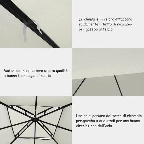 -Buona circolazione d’aria- La copertura per gazebo include piccola uscita d’aria per una buona circolazione d’aria. Il tetto è composto da 2 parti. Un grande tetto e un piccolo tetto.